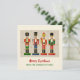 Send warm holiday wishes with this charming Christmas holiday card featuring a lineup of festive nutcracker soldiers in bright, traditional uniforms. With a cheerful “Merry Christmas” message in bold red script and a whimsical backdrop of stars and confetti, this postcard captures the magic of the season. Perfect for mailing to friends, family, or adding a decorative touch to your holiday gifts.