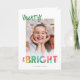 Esta divertida y brillante tarjeta de felicitación de vacaciones para Navidades incluye texto colorido, que dice "Merry & Bright" en verde, cal, rojo cereza, rosa, amarillo dorado y agua. La tipografía de la palabra "brillante" incorpora un diseño de papel tisular superpuesto. Esta carta desenfadada evoca una sensación de alegría, risa y alegría infantil en las cosas simples.
