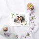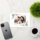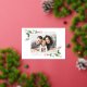 ¡Felices fiestas! Envíe a familiares y amigos sus más cálidos saludos navideños con esta tarjeta de felicitación dorada personalizable. Cuenta con ilustraciones en acuarela de acebos y vegetación festiva. Personalice añadiendo una foto de paisaje y sus textos. Esta tarjeta de Navidad en acuarela está disponible en otro papel de tarjeta.