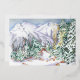 Tarjeta Festiva Con Relieve Metalizado Acuarela Paisaje montañoso de la nieve con pinos