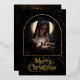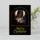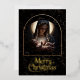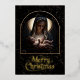 Esta tarjeta de Navidad de papel de oro presenta una representación sagrada de la Virgen María sosteniendo tiernamente al niño Jesús, enmarcada dentro de una ventana arqueada de divina elegancia. Sus halos brillan con calidez celestial, proyectando luz sobre los patrones florales ornamentados que los rodean. La profunda túnica azul de María, adornada con acentos dorados, evoca tanto la realeza como la devoción, mientras que la mirada hacia arriba del infante habla de inocencia y promesa eterna. Las palabras "Feliz Navidad" brillan en oro regio, anclando la tarjeta en reverencia festiva. Un recuerdo atemporal para aquellos que celebran la temporada como un regreso espiritual al hogar.