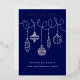 Adornos colgantes con diseño de prensa estampada con hojilla sobre fondo oscuro. Una tarjeta elegante especialmente adecuada para tarjetas de felicitación corporativas de vacaciones.