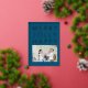 Tarjeta Festiva Con Relieve Metalizado Alegre Feliz Foto Familiar Azul Navidad Dorado