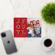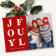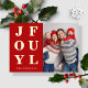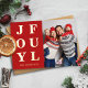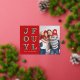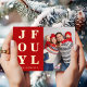 Tarjeta de vacaciones personalizada alegre moderna roja con foto de Navidad dorada.