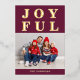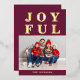 Tarjeta de Navidad personalizada alegre moderna burgundy con foto y foil dorado.