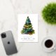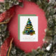 Tarjeta Festiva Con Relieve Metalizado Árbol de Navidad acuarela Merry Jolly Happy