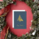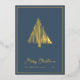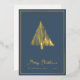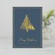 Tarjeta de Navidad Árbol de Navidad escandinavo abstracto con lámina dorada y foil azul turquesa... La parte delantera de nuestra tarjeta de Navidad de lujo presenta un dibujo lineal abstracto con lámina de oro real de un árbol de Navidad de estilo escandinavo encima del texto "Feliz Navidad" y su nombre y año en tipografía sans serif elegante... sobre un fondo azul turquesa intenso. La parte trasera de la tarjeta es en blanco y negro, mostrando el mismo árbol en negro encima de su mensaje personal de Navidad y firmas, también en tinta negra sobre fondo blanco. Todo el texto en la parte delantera y trasera de la tarjeta se puede revisar fácilmente en la plantilla de personalización.