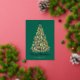 Esta tarjeta navideña no fotográfica presenta un ilustracion vintage de un árbol de Navidad decorado con adornos de Relieve metalizado elevado y estrellas en un fondo verde profundo. El saludo de Relieve metalizado al frente de la tarjeta dice "Feliz Navidad" pero es editable y puede cambiarse a lo que quieras. También hay espacio para sus nombres y el año. En la parte posterior de la tarjeta hay un fondo festivo de puntos de polka verde y blanco que se puede eliminar/editar... también se puede añadir una foto y/o texto adicional a la parte posterior.