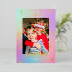Esta tarjeta de Navidad colorida y moderna presenta un fondo con gradiente de colores arcoíris, formas simples de árbol de Navidad que enmarcan una foto vertical y el saludo "alegre" en tipografía moderna. Este diseño admite una foto vertical. En la parte posterior está el mismo fondo de gradiente colorido. La lámina de oro realzada en esta tarjeta realmente brilla y agrega ese toque especial extra a sus tarjetas de Navidad. La lámina está disponible en oro, plata y oro rosa. ¡Vea nuestra colección de Navidad de tarjetas de lámina real para más artículos!