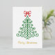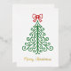 Tarjeta moderna de Navidades no-foto-Relieve metalizado con un doodle simple y lindo de un árbol de Navidad con un arco junto con el saludo editable "Feliz Navidad".
