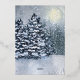 Tarjeta Festiva Con Relieve Metalizado Árboles de pinos cubiertos de nieve en bosque inve