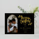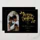 Tarjeta Festiva Con Relieve Metalizado Arched Photo Merry Christmas and Holly on Black