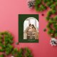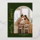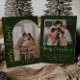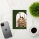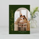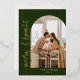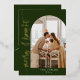 Tarjeta Festiva Con Relieve Metalizado Arco moderno verde y dorado Foto familiar Navidad