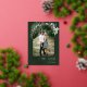 Este diseño presenta una acuarela y un eucalipto alrededor de una imagen arqueada con un marco de Relieve metalizado dorado.
