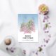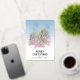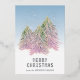Tarjeta de vacaciones de papel de aluminio artístico de árbol de Navidad en acuarela rosa y verde. Dibujo festivo en acuarela de árboles de Navidad pastel rosa y verde con nieve y un deseo de Feliz Navidad en papel de aluminio de plata real. Personalice el texto en la parte frontal y el mensaje en la parte posterior.