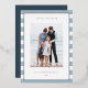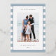 Comparte saludos de vacaciones con estas tarjetas de fotos de Hanukkah mostrando tu juego de fotos favorito sobre un fondo de rayas azul y blanco pálido con guarnecido de Relieve metalizado de lujo plateado. Un área de mensajes editable le permite personalizar su Chanukah o saludo de vacaciones. Añada el nombre de su familia o nombres debajo del año.