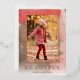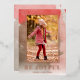 Tu foto favorita en una acuarela salpicada de taupe, rojo y melocotón con tus nombres y SER ALEGRE con letras de Relieve metalizado rosa de moda. Seleccione Matte para el papel más pesado y la Alta Definición para la mejor calidad de la foto.