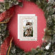Tarjeta Festiva Con Relieve Metalizado Beige Holly n Pine Border Photo Holiday Christmas