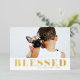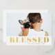 ¡Bendito! Envíe saludos festivos esta temporada navideña con esta tarjeta de vacaciones de Relieve metalizado de oro de personalizable. Presenta tipografía audaz. Personalice agregando una foto, nombres, año y otros detalles. Esta moderna tipografía fotografía tarjeta plana de vacaciones está disponible en otros materiales.