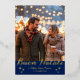 Blue Buon Natale e Felice Anno Nuovo Script Relieve metalizado de fotografía Tarjeta de vacaciones Relieve metalizado Tarjetas de Navidades selladas presenta un diseño simple con tu foto favorita con el texto de Relieve metalizado "Buon Natale" en tipografía moderna de escritura caligráfica sobre un fondo azul. Personaliza los nombres o el texto de su personalizado a continuación y el mensaje de su personalizado al revés. Perfecto para la familia y los amigos para celebrar Navidades y las vacaciones. Diseñado por ©2025 Evco Studio www.zazzle.com/store/evcostudio
