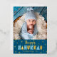 Tarjeta Festiva Con Relieve Metalizado Blue Happy Hanukkah Photo Cute Modern Real Gold