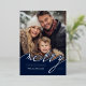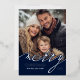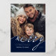 Tarjeta Festiva Con Relieve Metalizado Blue Merry Christmas Script Photo