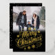Tarjeta Festiva Con Relieve Metalizado Bold Gold Snowflakes Script Merry Christmas Photo
