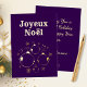 Say "Joyeux Noël" with this stunning card featuring rich purple and shimmering gold ornament illustrations. This design makes a bold statement with elegant vintage-style typography and festive décor elements. Perfect for friends, family, co-workers, or anyone who loves unique, non-traditional holiday greetings. Fully customizable front greeting (Joyeux Noël, Merry Christmas, Happy Holidays) and inside message. Stand out from typical cards with this artistic, one-of-a-kind modern design.