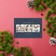 Un diseño moderno y elegante de tarjetas de vacaciones para Navidades con tres fotos cuadradas alineadas una al lado de la otra sobre un fondo azul marino salpicado de pinos de Relieve metalizado plateado. Personalice con su saludo de vacaciones personalizado, su nombre de familia y el año.
