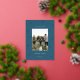 Un diseño moderno y elegante de tarjetas de vacaciones para Navidades con una sola foto vertical sobre un fondo azul invernal salpicado de pinos de Relieve metalizado dorado. Personalice con su saludo de vacaciones personalizado, su nombre de familia y el año por debajo.