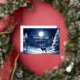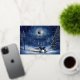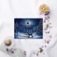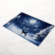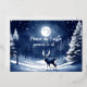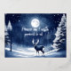 Tarjeta Festiva Con Relieve Metalizado Bosque invernal nevado, luna llena y ciervo en paz