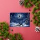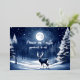 Envía un poco de brillo invernal y desea a todos lo mejor para sus fiestas con un majestuoso ciervo bajo una luna llena en un bosque pacífico, disponible en plateado o dorado brillante. Perfecto para cualquier saludo navideño.