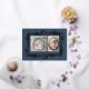 Welcome your little one and share holiday joy with the Botanical Frame Winter Foliage New Baby Foil Holiday Card, a festive birth announcement designed with elegance and seasonal warmth. The front features two custom photo placeholders framed by a beautifully illustrated winter foliage border, pressed in real foil—available in gold, silver, or rose gold for a luxurious shimmer. Set against a dark blue background, the design feels both celebratory and timeless. Personalize the back with your baby’s details and a heartfelt message to family and friends. A refined and festive way to introduce your newest arrival during the holiday season.