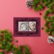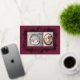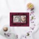Welcome your little one and share holiday joy with the Botanical Frame Winter Foliage New Baby Foil Holiday Card, a festive birth announcement designed with elegance and seasonal warmth. The front features two custom photo placeholders framed by a beautifully illustrated winter foliage border, pressed in real foil—available in gold, silver, or rose gold for a luxurious shimmer. Set against a rich dark red-purple background, the design feels both celebratory and timeless. Personalize the back with your baby’s details and a heartfelt message to family and friends. A refined and festive way to introduce your newest arrival during the holiday season.