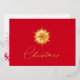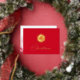 Sencilla y espectacular, esta tarjeta de Relieve metalizado rojo de manzana de caramelo tiene un copo de nieve solitario en el frente con "Navidades" fluyendo en escritura de vacaciones. Lo contrario tiene un saludo, y su firma. El fondo tiene copos de nieve de diseño más único, que se desvanecen alrededor de los bordes.