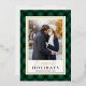 La célebre tarjeta fotográfica navideña luce tu imagen favorita sobre un fondo rústico de manto de búfalo pintado a mano verde y negro bordeado de Relieve metalizado dorado. "Festividades más felices" aparece debajo de la escritura de Relieve metalizado dorado y la inscripción en serif negro, con su(s) apellido(s) y el año en negro clásico.