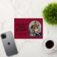 Tarjeta Festiva Con Relieve Metalizado Burgundy y dorado fotografía moderna de Navidad co