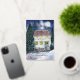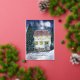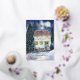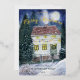 Tarjeta Festiva Con Relieve Metalizado Cabaña de Fiesta Cubierta de Nieve Acuarela