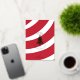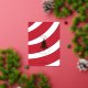 This Christmas card contains a mixture of geometric, Art-Deco-like style with a looser, casual appearance. Featuring a candy cane pattern background, it also has metallic foil portions and a customizable sender name. The sender name can be altered by clicking on the blue "Personalize this Design" button.