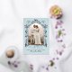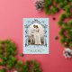 Esta caprichosa tarjeta de anuncio de boda de día festivo con arco de fotos presenta un hermoso arco de flores invernales ilustradas con dos palomas de la paz sobre un fondo moteado azul claro. La elegante letra cursiva dice "Casados y alegres" en el color de lámina de su elección. ¡Personalice su saludo, agregue su foto de boda favorita y personalice con los nombres de su nuevo Sr. y Sra.! A todos les encantará esta tarjeta de recién casados de día festivo única - ¡un favorito para la nevera con seguridad!