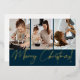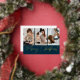 Tarjeta Festiva Con Relieve Metalizado Chic Moderno Feliz Navidad Foto Azul Marino