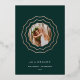 Comparte saludos de vacaciones con estas tarjetas de fotos de moda y Navidad minimalistas con tu foto favorita enmarcada por un marco geométrico delgado en Relieve metalizado de oro, en un rico fondo verde cazador. "Todo es luminoso" aparece debajo de la letra en serif blanquecina y en letras cursivas. Personalice el saludo de su personalizado y los nombres que aparecen debajo. Una elegante tarjeta de vacaciones con una estética moderna y mínima que permite que tu foto favorita brille.