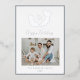 Tarjeta de vacaciones de foil con foto clásica de la cresta del monograma azul plateado y blanco