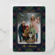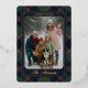 This elegant and contemporary holiday card features a plaid pattern adorned with the classic "Happiest Holidays!" message printed in real gold foil. It showcases shades of green, dark blue, and red, creating a classy and traditional English holiday ambiance. You can personalize it by adding your family photo and name on the front and a personal message on the back. This card is perfect for sending Christmas messages and wishes in a traditional colonial style, making it an excellent choice for a charming, sophisticated theme.