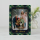 This elegant and contemporary holiday card features a plaid pattern adorned with the classic "Happiest Holidays!" message printed in real gold foil. It showcases shades of green, dark blue, and red, creating a classy and traditional English holiday ambiance. You can personalize it by adding your family photo and name on the front and a personal message on the back. This card is perfect for sending Christmas messages and wishes in a traditional colonial style, making it an excellent choice for a charming, sophisticated theme.
