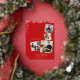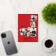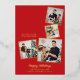 Un auténtico diseño de fiesta con lámina de oro elegante de 4 fotos para personalizar con tus fotos favoritas enmarcadas en oro, mensaje, nombres y año. El reverso presenta copos de nieve que caen. Diseñado por Thisisnotme©