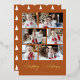 Tarjeta de vacaciones de Relieve metalizado moderno con 6 fotos dispuestas en forma de collage. "Felices Fiestas" se muestra en un guión de Relieve metalizado dorado escrito a mano con el nombre de tu familia y el año que se muestra abajo en un fondo de terracota. La tarjeta multifoto de vacaciones se revierte para mostrar un patrón de terracota y árbol de Navidad blanco.