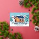Esta hermosa tarjeta de Navidad de papel dorado personalizada para empresas de bienes raíces es perfecta para una compañía de bienes raíces ubicada en el norte. Un hermoso dibujo de una casa cubierta de nieve y humo saliendo de la chimenea junto a árboles verdes. Un agente inmobiliario puede mantener Felices Fiestas en escritura cursiva o personalizar con sus propios saludos de temporada. Agregue su mensaje personalizado en el reverso.