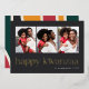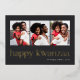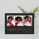 Comparte saludos de vacaciones con estas hermosas tarjetas de fotos de Kwanzaa que incluyen 3 fotos verticales o orientadas a retratos alineadas lado a lado. "Happy Kwanzaa" aparece debajo de un Relieve metalizado de oro conectado con un serif funda inferior acentuado con estrellas. Personaliza con tu apellido y el año.