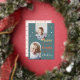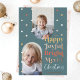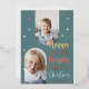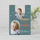 Envíe su alegría de vacaciones, alegría y felicidad a su familia y amigos con nuestra divertida y moderna tarjeta de Navidades de Relieve metalizado de oro rosa de confetti. El diseño presenta dos diseños fotográficos en marcos de arco, con detalles coloridos con acentos de Relieve metalizado de oro rosa. " Feliz, alegre, brillante, Feliz Navidad" se muestra en un divertido diseño con acentos de oro rosa. Personaliza con el nombre y el año de la familia. Diseño Por Moodthology Papery.